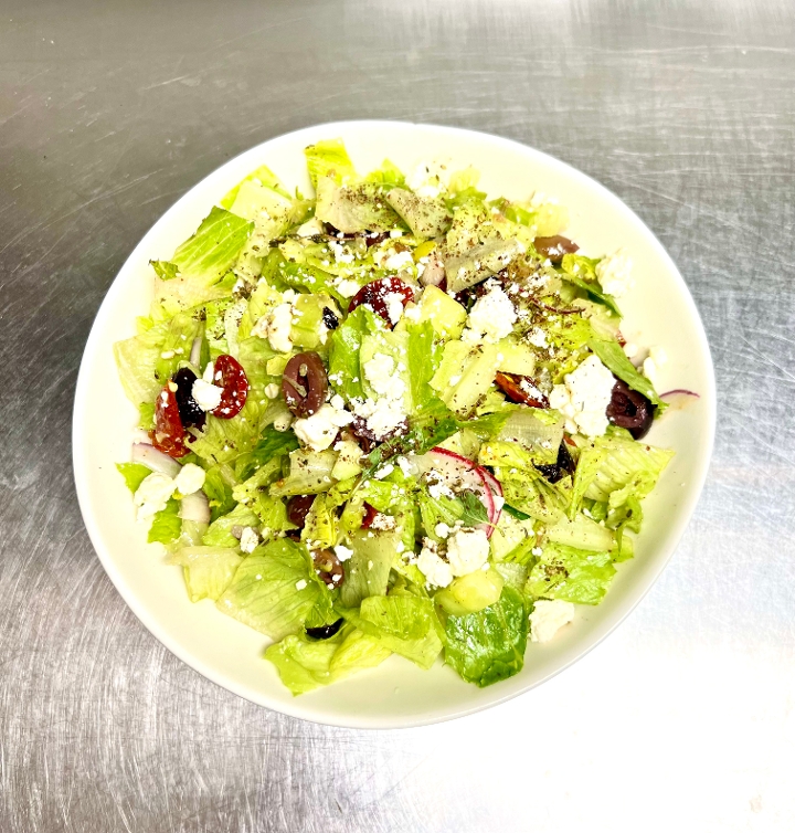 rosewater vinaigrette, olives, pepperoncini, tomato, onion, feta