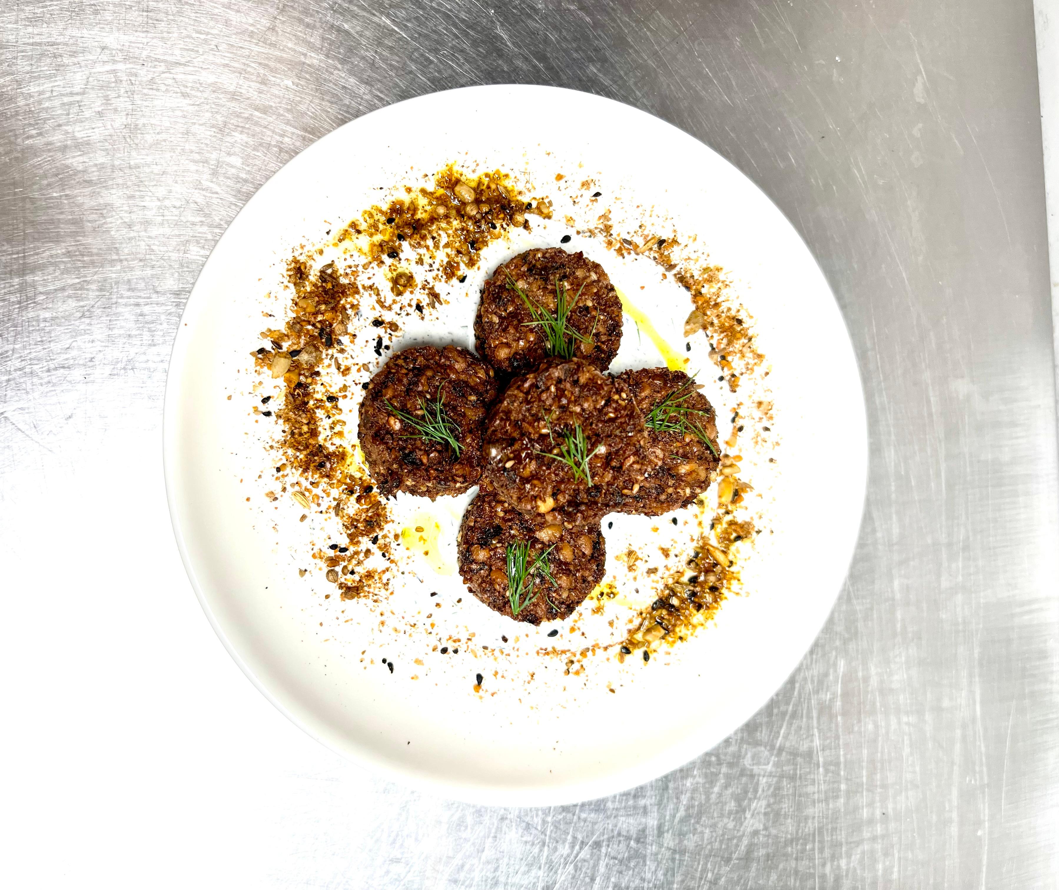 charred scallion yogurt, sesame dukkah, dill